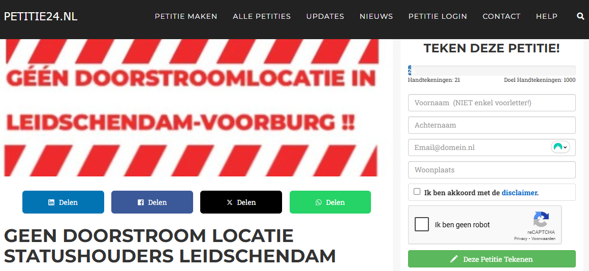Wij starten een petitie en zullen onze gemeente benaderen om een inspraakavond te organiseren voor ALLE inwoners van Leidschendam-Voorburg.